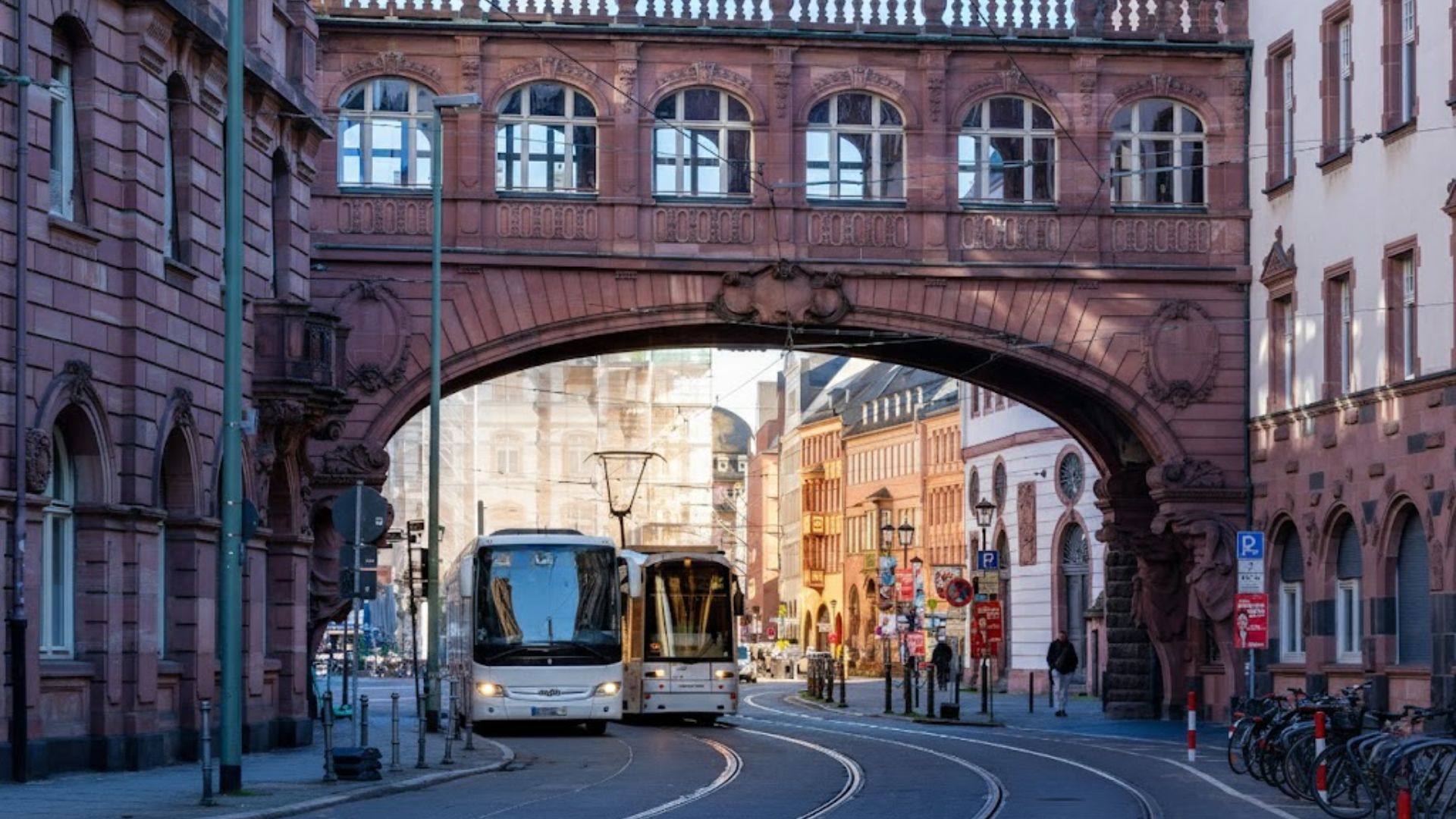 Bus Advantage: Easy navigation between old and modern Frankfurt.